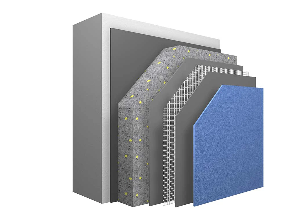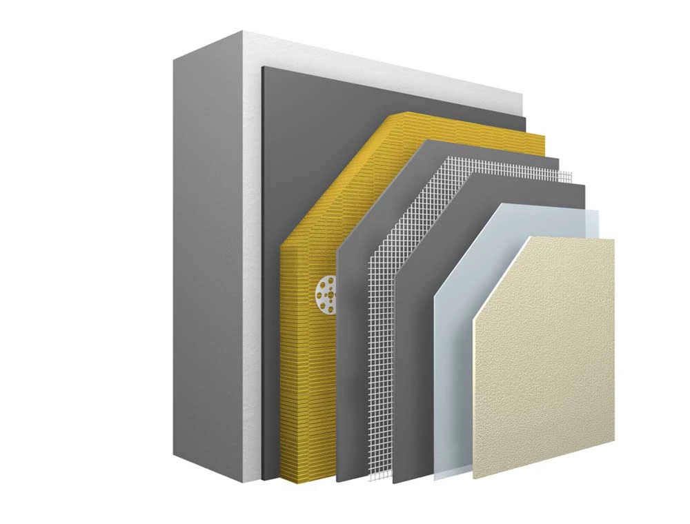 Beginnend mit Einrüstarbeiten, aufkleben, dübeln, schleifen, armieren, grundieren